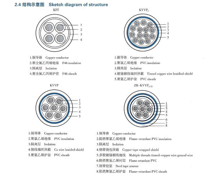 本公司在額定電壓450/750V聚氯乙烯絕緣和護套控制電纜的基礎上開發(fā)了0.6/1kv交聯(lián)聚乙烯絕緣控制電纜、阻燃型PVC/XLPE絕緣控制電纜和耐火型PVC/XLPE絕緣控制電纜。450/750V聚氯乙烯絕緣控制電纜符合GB9330-88的規(guī)定。0.6/1KV交聯(lián)聚乙烯絕緣控制電纜符合IEC60502.1的有關規(guī)定。阻燃型和耐火型控制電纜其電氣性能符合GB9330-88《塑料絕緣控制電纜》,阻燃性能根據(jù)要求可符合GB/T18380.3《成束電線或電纜的燃燒實驗方法》中的A、B或C類,耐火性能符合BG/T19216-2003《在火焰條件下電纜或光纜的線路完整性試驗》的規(guī)定。